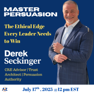 This week on The A to Z Podcast, I sit down with Derek Seckinger: a top-tier commercial real estate advisor, my strategic partner, and a master of purpose-driven communication. With decades of experience, Derek has cracked the code on closing high-stakes deals without compromising trust – making him the perfect guide to the most critical skill for every professional, leader, founder, and investor: